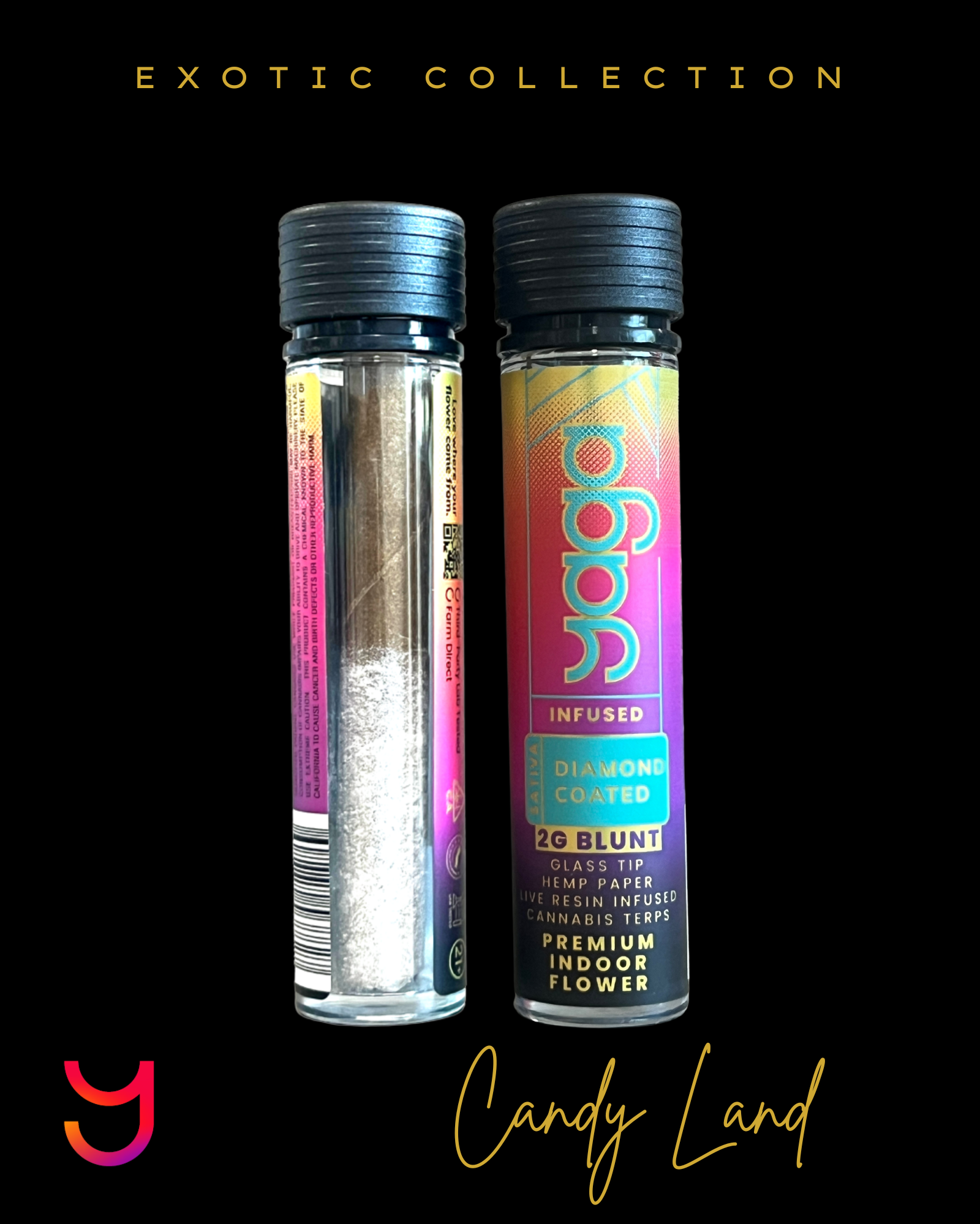 This handcrafted blunt contains 2 grams of exotic full flower buds, carefully broken down by hand and wrapped in 100% tobacco-free, all-natural hemp blunt paper. It features a premium glass tip for a smooth draw and is hand-coated with potent THC distillate, then rolled in 1 gram of 99% pure THC diamonds. Each one is sealed in a re-sealable glass tube to preserve freshness and elevate your smoking experience.